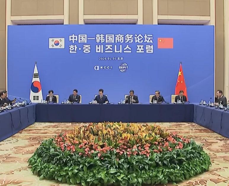 2026年1月5日,中韩商务论坛在中国北京钓鱼台国宾馆芳华苑举行。本次论坛由中国国际贸易促进委员会与大韩商工会议所共同主办,韩国总统李在明出席了本次活动。本次论坛围绕“制造业创新、消费品新市场及服务业合作”三大关键议题展开深入交流,共同探索两国经贸合作的新路径与新机遇。